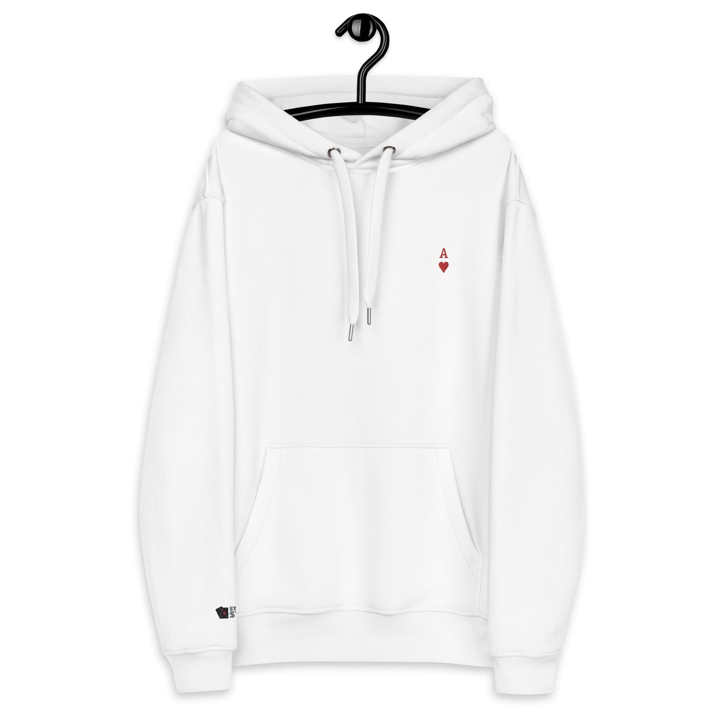 Introducing the "Ace of Hearts - Premium Eco Poker Hoodie"—a seamless blend of poker tradition and eco-conscious style. This hoodie proudly features the intricately embroidered Ace of Hearts, a symbol that resonates with every poker enthusiast. Crafted from organic and recycled materials, this hoodie not only looks good but also feels great on and off the poker table. The comfortable fit, front pouch pocket, and double-layered hood make this hoodie a classic choice for those who value both sustainability and style.